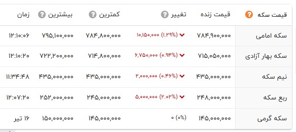 قیمت طلا و انواع سکه را در جدول زیر مشاهده می کنید.