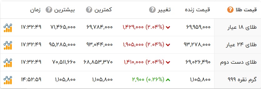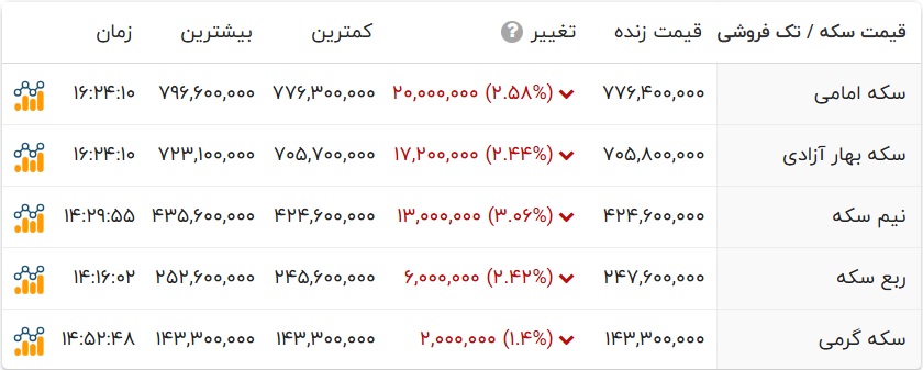 قیمت طلا و انواع سکه را در جدول زیر مشاهده می کنید.