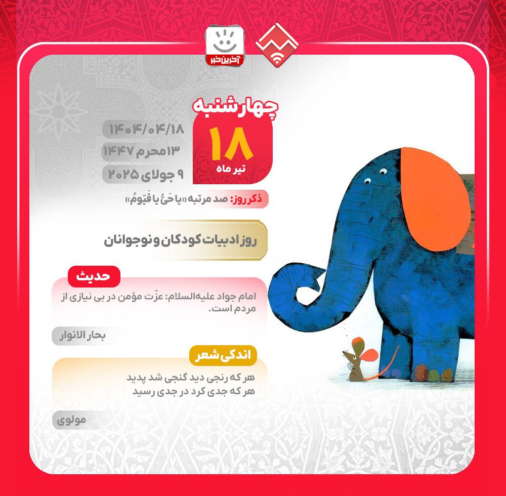 چهارشنبه 19 تیر 1404 - 08:20:00