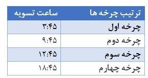 لازم به ذکر است تک چرخه روزهای تعطیل تا اطلاع ثانوی نیز به ساعت 12:45 موکول گردیده و چرخه اول تسویه شاپرکی(3:45) در ایام مزبور هیچگونه تغییری نخواهد داشت.