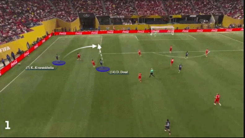 حتی وقتی این نوع حرکت نفوذی به نتیجه نمیرسد، همچنان بهعنوان یک فریب تهدیدآمیز باقی میماند. بهترین نمونه از این موضوع را میتوان در دیدار مرحله یکهشتم نهایی پاری سنژرمن برابر اینتر میامی دید؛ جایی که دزیره دوئه بار دیگر با یک حرکت زیرکانه و نفوذی از عمق، دفاع را بههم ریخت. در آن صحنه، خوویچا کواراتسخلیا بهجای پاس دادن، وارد محوطه جریمه شد و مستقیم به سمت دروازه حمله کرد- در حالیکه هیچ بازیکنی از میامی بدون انجام خطا نمیتوانست به او نزدیک شود.