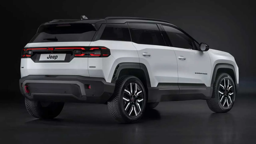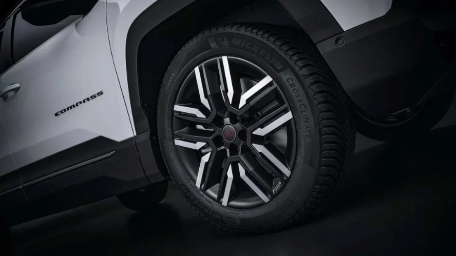 در نمای بیرونی، کامپس 4xe اوورلند به سپرهای جلو و عقب کمی متفاوت با پوشش محافظ ضدخش جیپ مجهز شده است. همچنین، صفحات محافظ زیر بدنه، قلاب یدککش عقب، برچسب مات ضدبازتاب روی کاپوت و مجموعه جدیدی از رینگهای 19 اینچی با لاستیکهای فاق بلندتر به آن اضافه شدهاند. مهمتر از همه، این شاسیبلند با تعلیقی که 10 میلیمتر مرتفعتر از نسخه استاندارد است، زوایای آفرود بهتری ارائه میدهد که شامل زاویه ورود 27 درجه، خروج 31 درجه و شکست 16 درجه است.