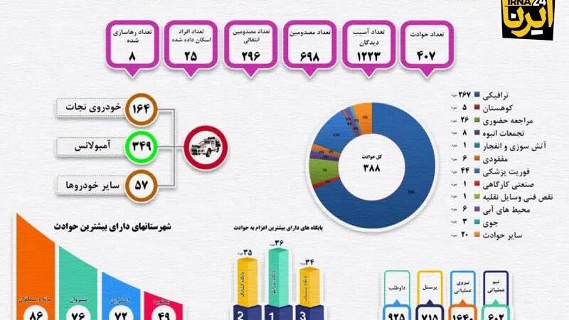 اینفوگرافیک/ عملکرد میدانی دولت در مدیریت حوادث؛ امداد به ۶۹۸ مصدوم خراسانشمالی