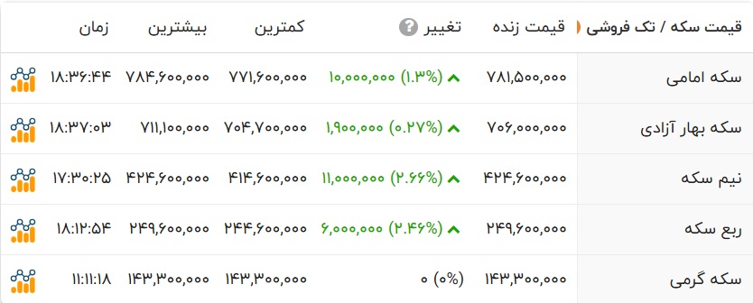 رنگ سبز بازار طلا و ارز؛ سکه امامی به کانال 78 میلیون تومانی وارد شد