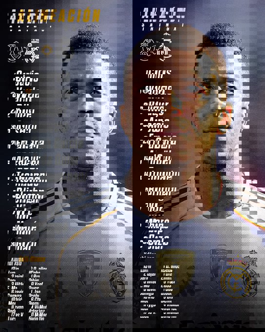 در غیاب ترنت، ژابی آلونسو از فده والورده در دفاع راست استفاده کرده است. فران گارسیا در دفاع چپ میایستد و رودیگر و آسنسیو محافظت از قلب دفاع را بر عهده دارند. شوامنی در قلب خط میانی میایستد و آردا گولر و بلینگام او را در میانه زمین همراهی میکنند.