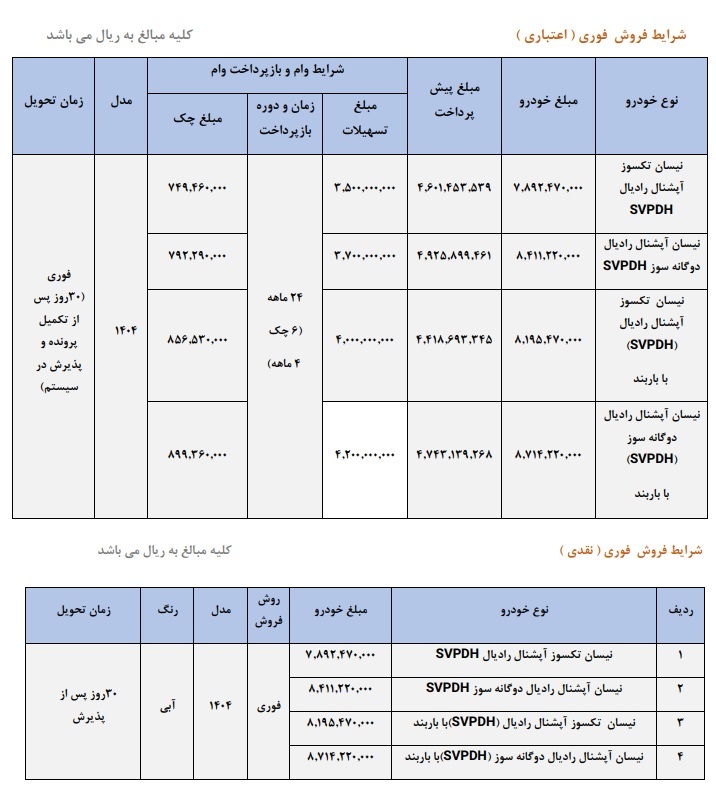 دور جدید فروش اعتباری و فوری سایپا با تحویل فوری از تاریخ ۱۸ تیر ۱۴۰۴، عمدتاً برای محصولات نیسان مانند وانت زامیاد و پادرا پلاس آغاز شده است که این طرح به صورت نقدی و اعتباری با اقساط ۲۴ ماهه و موعد تحویل ۳۰ روز کاری عرضه میشود. این درحالی است که این دور از فروش سایپا هم مانند طرحهای گذشته خریداران را با چالشهای متفاوتی روبه رو میکند.