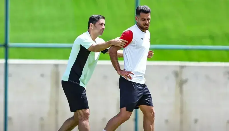 از تصاویری که امروز از اردوی پرسپولیس بیرون آمده، وحید هاشمیان را در حال فشار گذاشتن روی مرتضی پورعلیگنجی میبینیم. پورعلیگنجی که مشخص است تمرینات سختی را پشت سر گذاشته، در حال نفس نفس زدن، دستهای وحید هاشمیان را روی کتف خود حس میکند و در ضربان قلب بسیار بالا به دویدن ادامه میدهد. این شبیه همان سبکی است که هاشمیان همواره در فوتبالش دنبال میکرده است؛ پرس روی مدافعان.