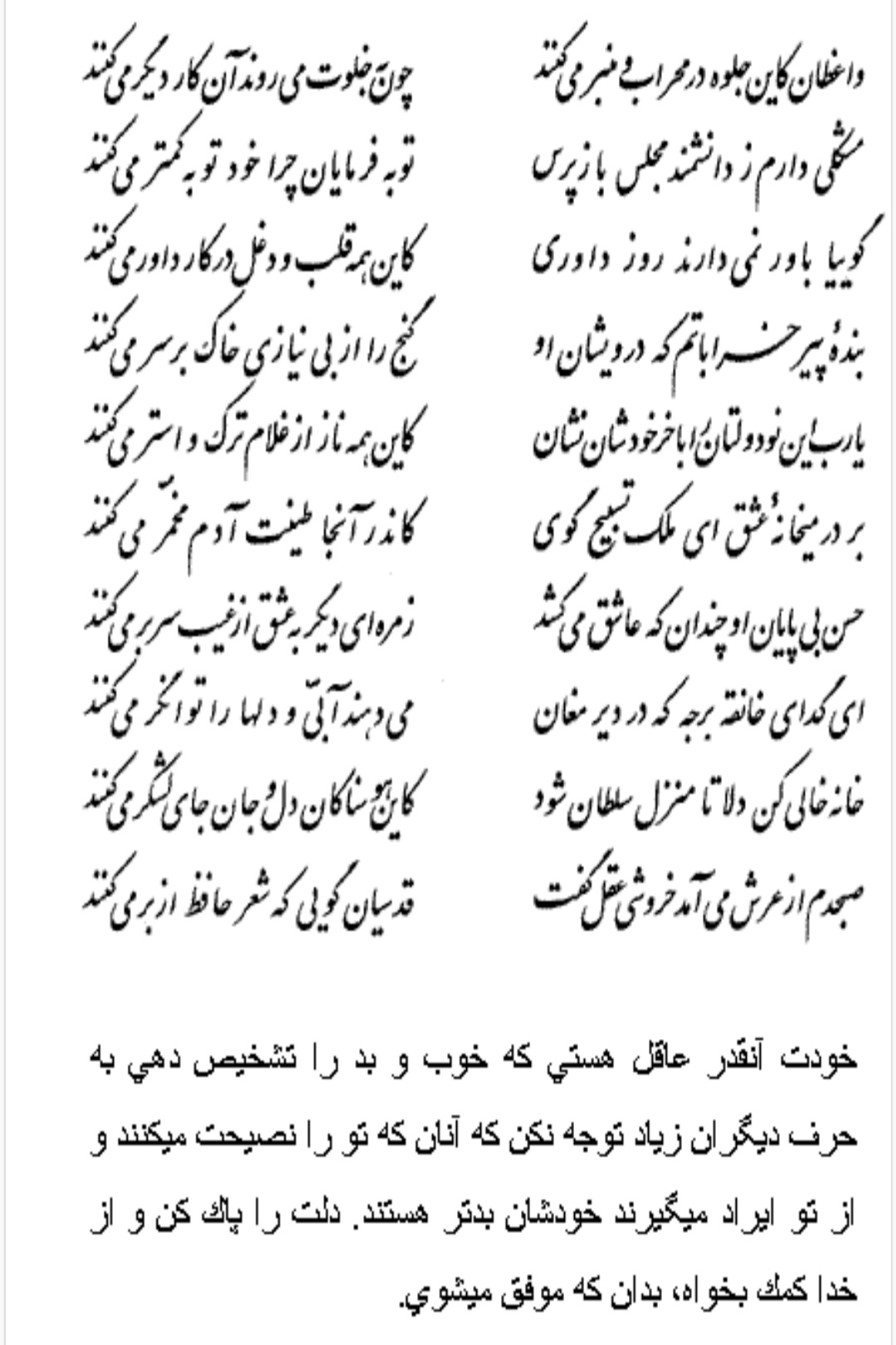 بیتوته/ تشخیص و پذیرفتن خوب و بد از محتوای غزل، بستگی به وضعیت روحی، عاطفی و باور صاحب فال دارد. در هر صورت در هر غزل حافظ بیتی وجود دارد که صاحب فال آن را مناسب آرزو و نیت خود می یابد و همان را به عنوان وصف الحال و جواب حافظ می پذیرد و به آرامش خاطر دست می یابد.