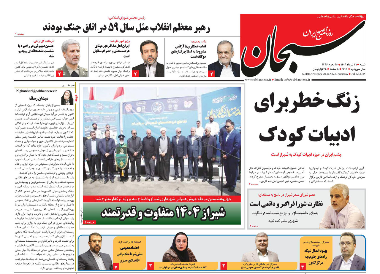 مهر/ صفحه نخست روزنامه‌های استان فارس در روز شنبه ۲۱ تیرماه منتشر شد.
