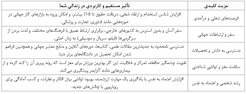 خلاصه کاربردی فواید یادگیری زبان انگلیسی در یک نگاه
