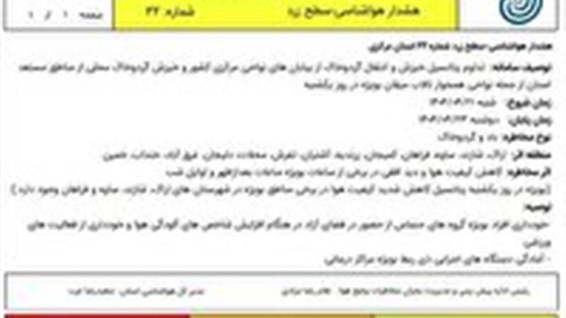 صدور هشدار هواشناسی سطح زرد شماره ۲۲ استان مرکزی