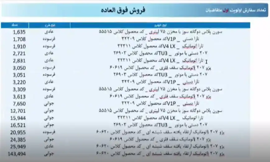 در این دوره، درخواستهای خرید خودروهای ثبتشده در قالب طرحهای حمایت از خانواده و جوانی جمعیت، طرح جایگزینی خودروهای فرسوده و متقاضیان عادی مورد بررسی قرار گرفته و فرایند اولویتبندی برای تخصیص خودرو انجام خواهد شد.