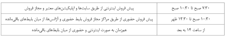 1. بلیط قطار همه شرکتهای ریلی در تمامی مسیرها در این زمان جهت فروش عرضه میشود.