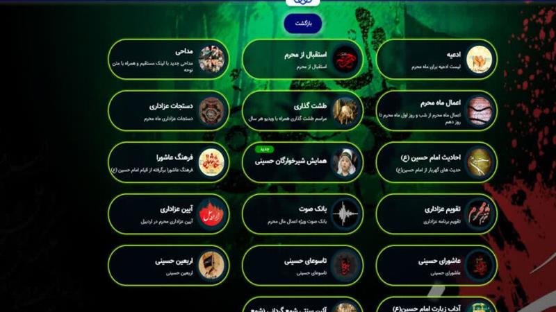 وی افزود: بخش «نوای محرم» شامل محتوای متنوعی همچون دعاها و زیارتهای مرتبط با این ایام محرم از جمله زیارت عاشورا، زیارت امام حسین (ع)، فضیلتها و اعمال ماه محرم، تقویم عزاداری محلهها، نماها و تصویرهایی از دستههای عزاداری، آداب زیارت امام حسین (ع) ، مداحیها و تبیین فرهنگ عاشورایی است.