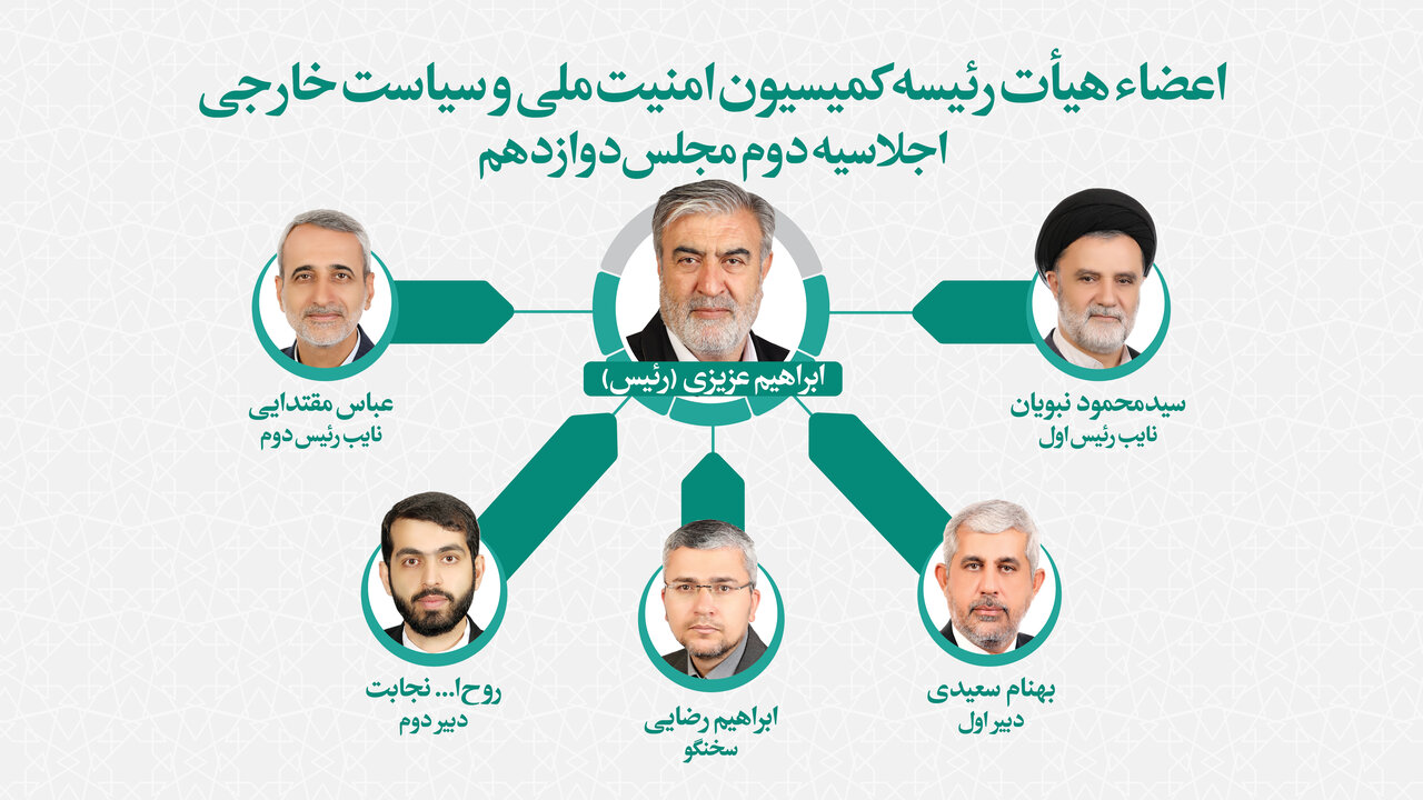 اعضای کمیسیون امنیت ملی، «ابراهیم عزیزی» نماینده مردم شیراز و زرقان را به عنوان رئیس، «سیدمحمود نبویان» نماینده مردم تهران، ری، شمیرانات، اسلامشهر و پردیس و «عباس مقتدایی» نماینده مردم اصفهان هم به عنوان نواب اول و دوم رئیس کمیسیون انتخاب کردند.