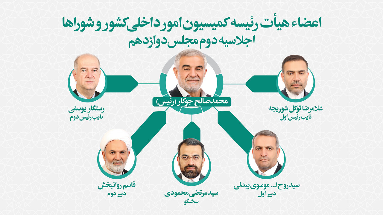 همچنین با رأی اعضای کمیسیون «سید مرتضی محمودی» نماینده مردم نماینده تهران، ری، شمیرانات، اسلامشهر و پردیس به عنوان سخنگو و «سید روح الله موسوی بیدلی» و « قاسم روانبخش» نماینده های مردم لردگان و خانمیرزا و قم به عنوان دبیران اول و دوم کمیسیون امور داخلی کشور و شوراهای مجلس شورای اسلامی برای اجلاسیه دوم انتخاب شدند.