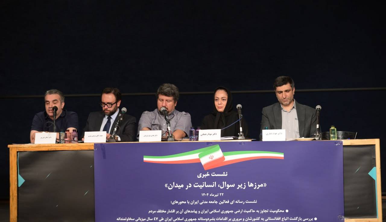 نشست خبری «مرزها زیر سوال؛ انسانیت در میدان» با حضور جمعی از فعالان برجسته حوزه جامعه مدنی برگزار شد و به بررسی تحولات اخیر کشور، موضوع تجاوز به حاکمیت ارضی جمهوری اسلامی ایران و پیامدهای آن بر اقشار مختلف مردم، بازگشت اتباع به افغانستان و نیز اقدامات بشردوستانه جمهوری اسلامی ایران در طی ۴۷ سال میزبانی سخاوتمندانه پرداخت.