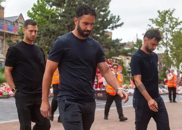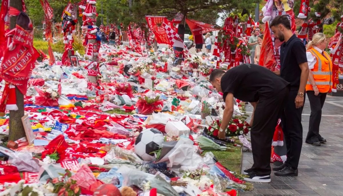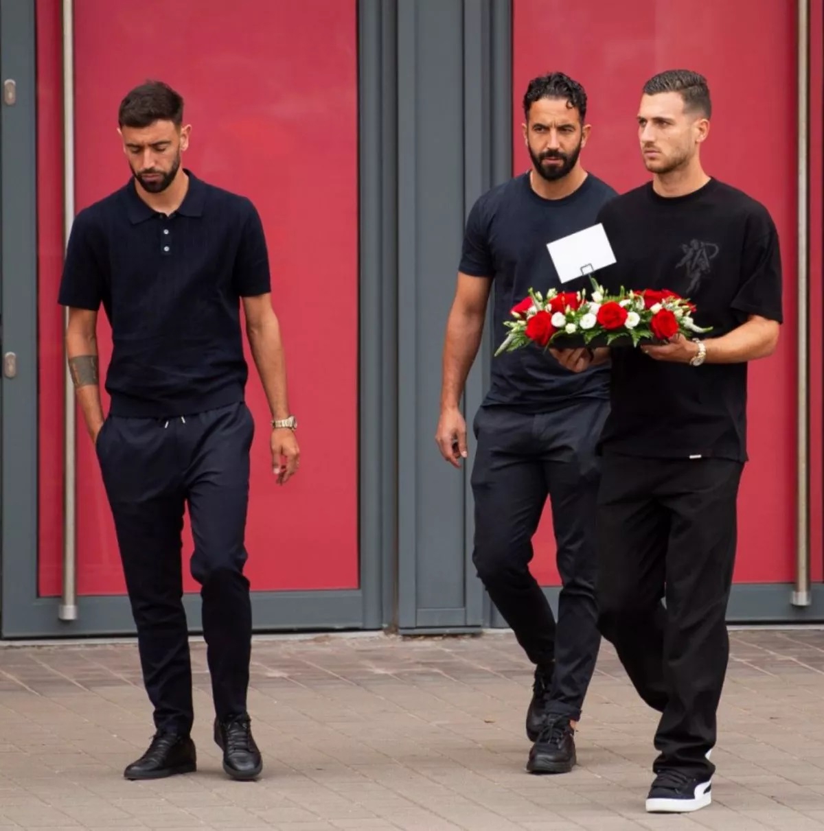 روبن آموریم، سرمربی منچستریونایتد، همراه با دو هموطن پرتغالیاش، برونو فرناندز و دیوگو دالو، به آنفیلد رفتند تا در محل یادبود دیوگو ژوتا و آندره سیلوا، که به یاد این دو برادر شکل گرفته، ادای احترام کنند.