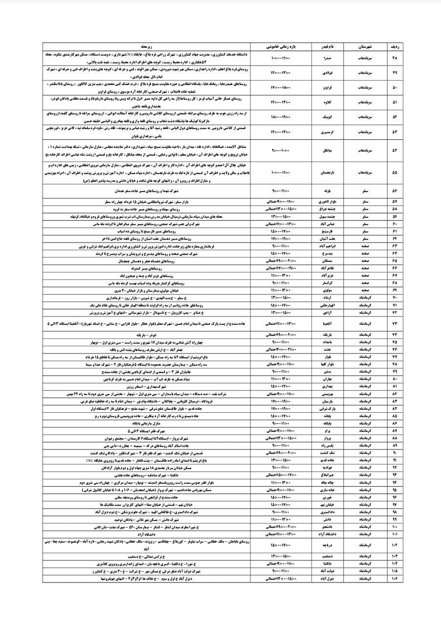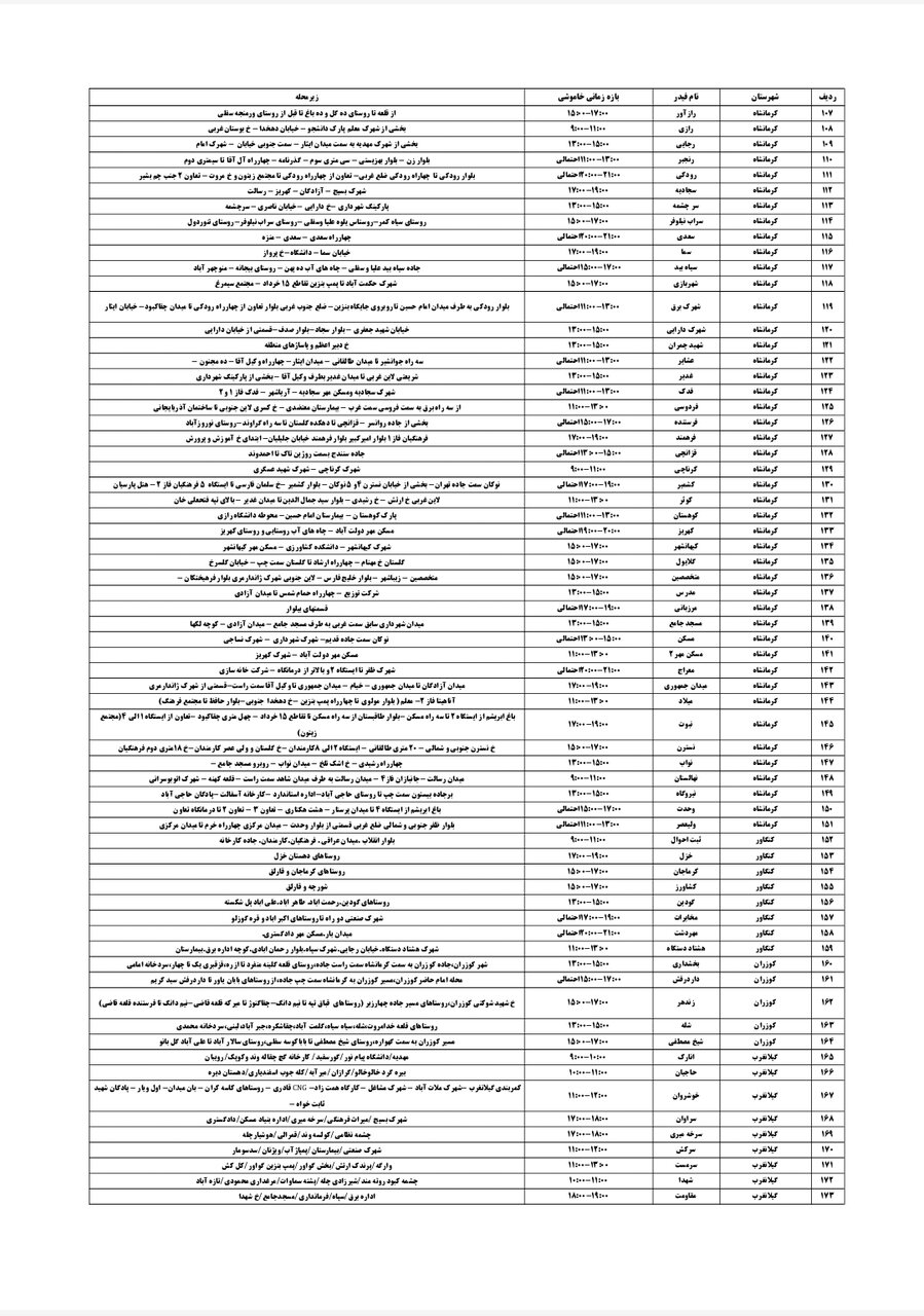 شرکت توزیع برق استان کرمانشاه طی جدولی، زمانبندی قطعی برق در مناطق مختلف استان کرمانشاه را برای امروز _ سهشنبه بیستوچهارم تیر_ اعلام کرد.
