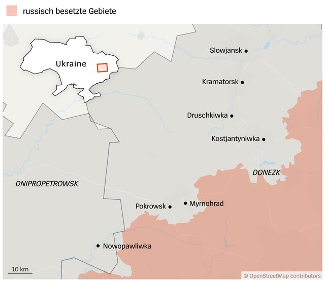 رسانه آلمانی نوشت: «پترو» یکی از افسران تیپ ۲۴ مکانیزه اوکراین میگوید کوستیانتیفکا در آنِ واحد از سه طرف تهدید میشود. تیپ او در شرق استان مستقر است که به ندرت تغییری در جبهههای آن ایجاد شده است. اما تابستان گذشته، روسها به سمت جنوب و در بهار سال جاری نیز به سمت غرب کوستیانتینفسکا و به سمت پوکروفسک پیشروی کردند. میتوان از این مسیرها دسترسی به جادهها را بست و پهپادها را روانه داخل استان کرد. لازم نیست مستقیما به این استان حمله شود، روسها میخواهد آن را دور زنند. به گفته پترو، چند ماه است که پهپادهای روس «مدام شهر را شخم میزنند.»
