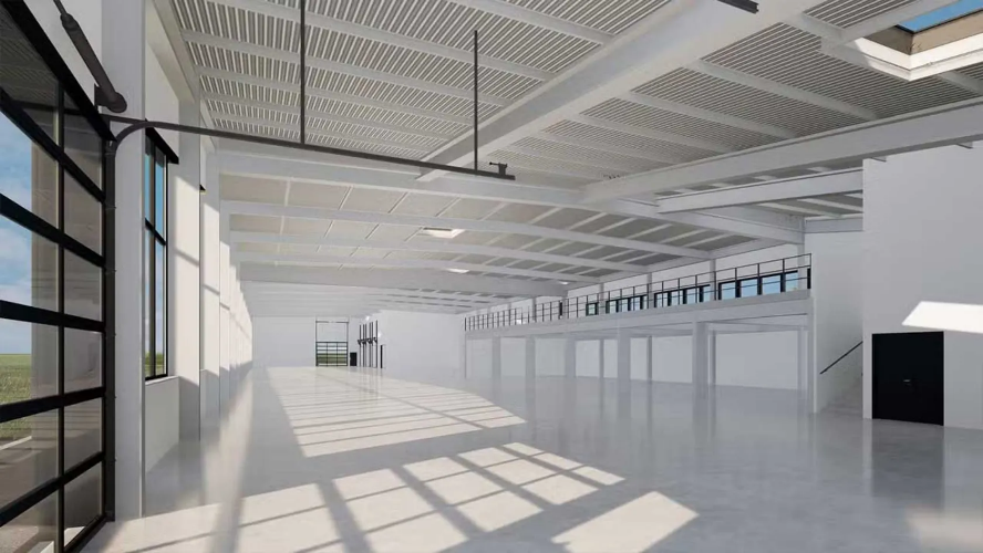 این محوطه ۲۳ هکتاری فضای کافی برای گسترش دارد. کارخانه قدیمی اتوره بوگاتی اکنون متعلق به شرکت هوافضای فرانسوی سافران (تولیدکننده ارابه فرود) است و به همین دلیل، بوگاتی در اوایل دهه ۲۰۰۰ کارخانهٔ جدیدی ساخت که تولید ویرون را آغاز کرد. آتلیه جدید بوگاتی ساختاری مدرن و متناسب با هویت این برند خواهد داشت. بوگاتی میگوید این ساختمان طراحی کمارتفاع و گستردهای دارد که بهآرامی از دشتهای اطراف سر برمیآورد. ۳۰ درصد از سقف این سازه با چمن طبیعی پوشیده خواهد شد تا با محیط اطراف هماهنگ باشد. این آتلیه با ابعاد 131 متر طول و 25 متر عرض، در مقایسه با استانداردهای کارخانههای خودروسازی بسیار کوچک است و مساحتی کمتر از یک هکتار دارد. برای مقایسه، کارخانه فولکسواگن در ولفسبورگ حدود ۱۶۲ هکتار فضای تولیدی دارد؛ اما خودروهای تولیدی این آتلیه سودآوری بسیار بالا و جذابیتی بینهایت خواهند داشت. دیوارهای شیشهای فضای داخلی را روشنتر و دلپذیرتر میکنند و برای کارگران و بازدیدکنندگان متمول که برای دیدن خودروهایشان میآیند، محیطی جذاب فراهم میکنند. این آتلیه با فرآیندهای تولید و جریان کاری جدید، امکان دو برابر شدن ظرفیت تولید بوگاتی را فراهم خواهد کرد.