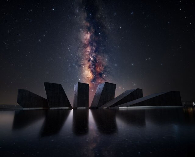 این عکس که توسط «یوجی ژانگ»(Yujie Zhang) در اوت ۲۰۲۴ از شهرستان «سونگیانگ»(Songyang) چین گرفته شده، نوار درخشان کهکشان راه شیری را نشان میدهد که به سمت مجموعهای از ساختمانهای منعکسشده در آب در حرکت است.