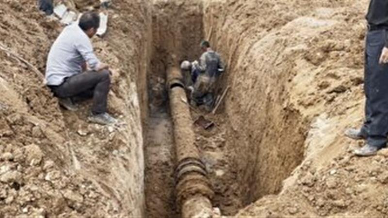 نیروهای عملیاتی در حال ترمیم شکستگی خط انتقال آب