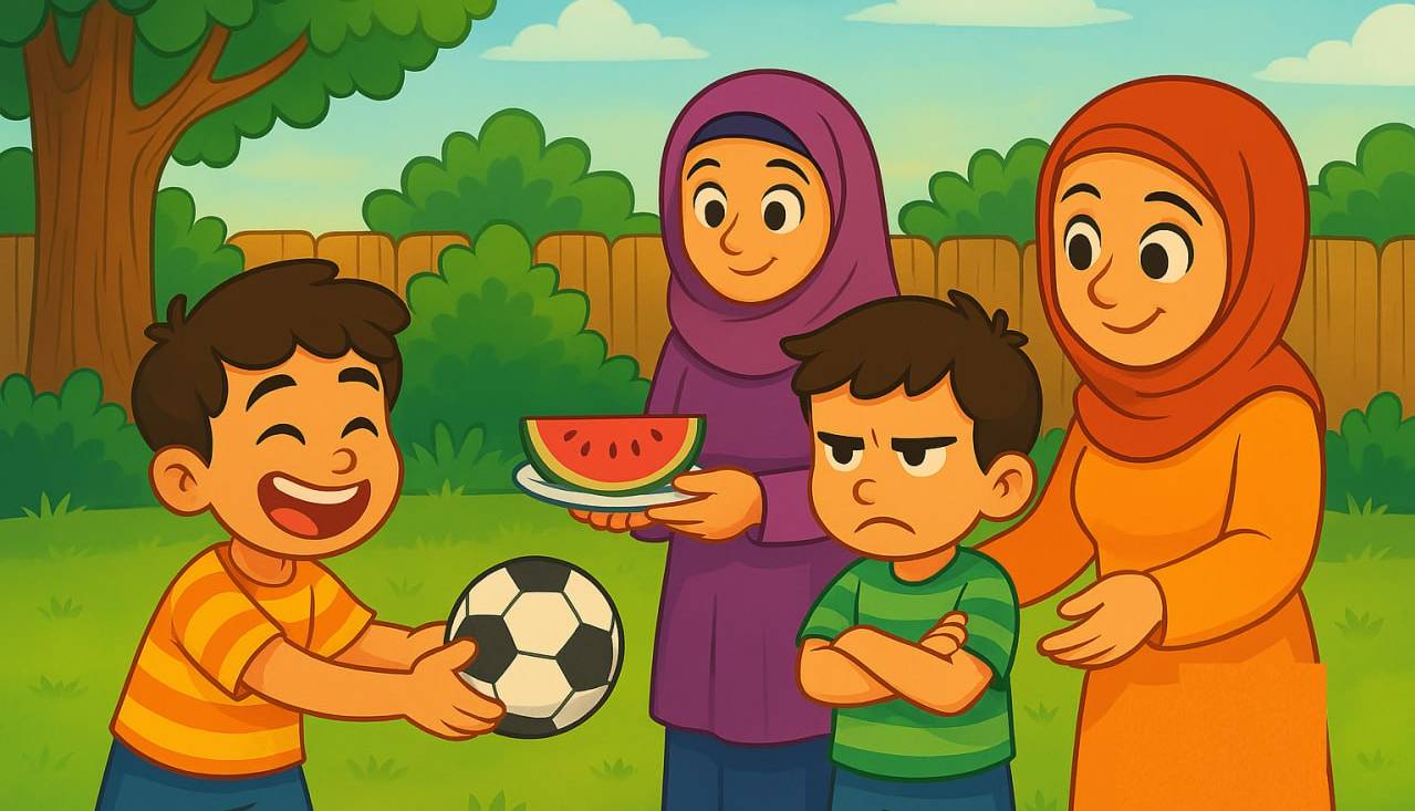سعید گفت: «چه خوب» و یک برش هندوانه برداشت و گفت: «ماهان زود بخور بریم بازی». همه به هم نگاه کردند و خندیدند.