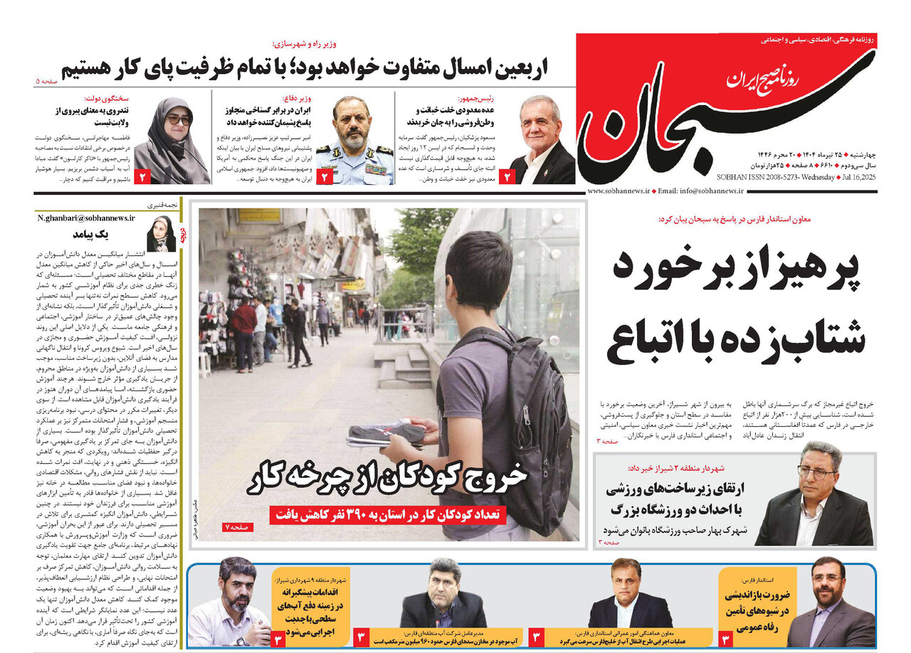 صفحه نخست روزنامه‌های استان فارس در ۲۵ تیرماه