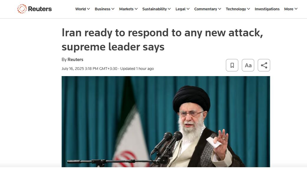 خبرگزاری رویترز نیز آمادگی ایران برای پاسخ به هر تجاوزی را به نقل از رهبر انقلاب تیتر کرد و نوشت: آیت الله خامنه ای اعلام کرد که ضربه بعدی، بسیار بزرگتر از ضربهای خواهد بود که در طول جنگ ۱۲ روزه به اسرائیل زده شد.