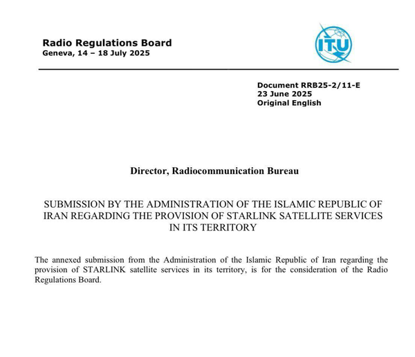 به گزارش خبرنگار علم و پیشرفت، وزارت ارتباطات جمهوری اسلامی ایران با ارائه یک شکایت رسمی به اتحادیه بینالمللی مخابرات (ITU)، نسبت به ارائه خدمات اینترنت ماهوارهای استارلینک در قلمرو سرزمینی ایران اعتراض کرد.