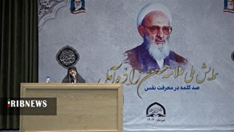 سخنران ویژه این مراسم، سرکار خانم سعیده حسنزاده آملی، استاد حوزه و دانشگاه و فرزند علامه، با بیان نکاتی عمیق از آثار پدر خود، به تفسیر آیه «قل کل یعمل علی شاکلته» پرداخت و گفت: اثر هر انسان، نمودار دارایی مؤثر وجود اوست، و، چون خداوند بیپایان است، اثر او یعنی قرآن نیز بیپایان است؛ همانگونه که انسان، بهعنوان خلیفه الهی، ظرف بیپایانی برای دریافت معارف است.