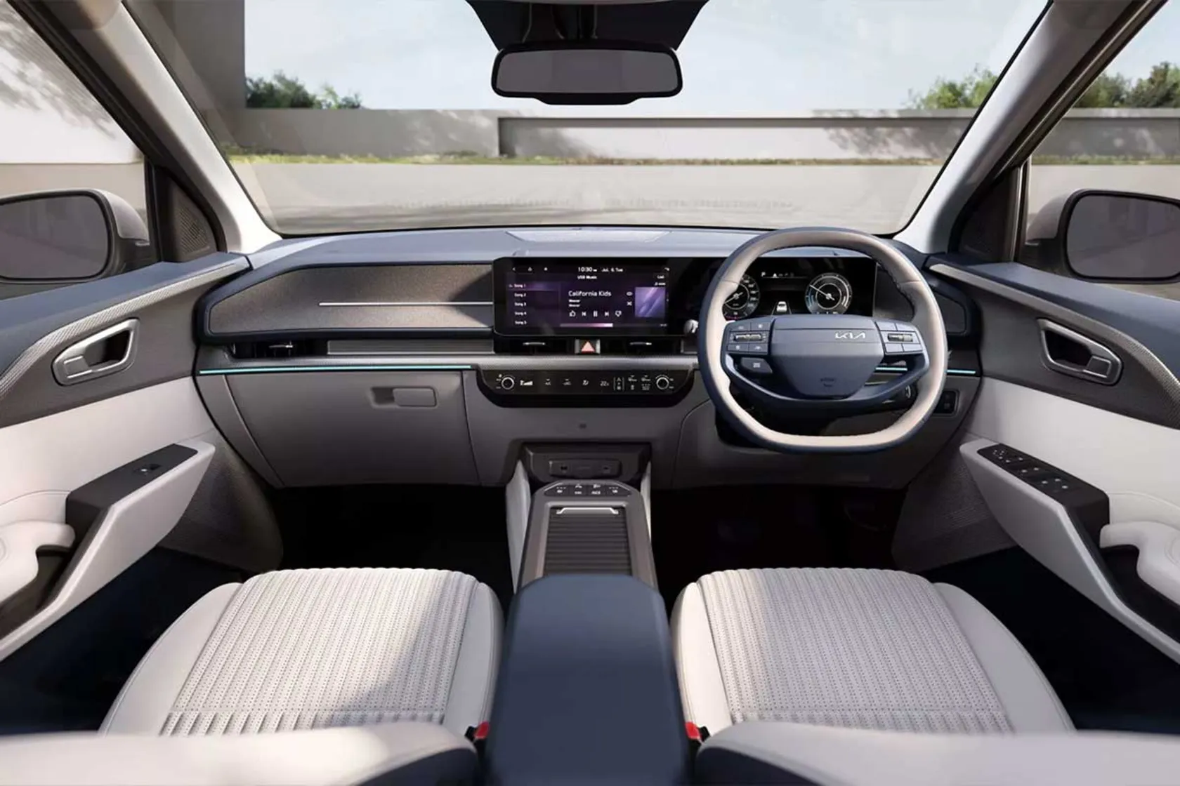 در داخل، کارنز کلاویس الکتریکی همچنان به چیدمان سهردیفه با ظرفیت هفت سرنشین وفادار مانده و طول آن 4,550 میلیمتر است. داشبورد مجهز به یک صفحه آمپر دیجیتال 26.6 اینچی است که در تمام مدلها استاندارد است. به لطف حذف گیربکس سنتی، کنسول میانی حالا طراحی شناور دارد که فضای کاربردی بیشتری فراهم میکند. بسته به تیپ، این خودرو الکتریکی با مجموعهای از امکانات راحتی و رفاهی مثل تهویهٔ صندلیهای جلو، سیستم صوتی 8 بلندگوی بوز، نورپردازی داخلی، سانروف پانوراما و تا 20 سیستم کمکراننده پیشرفته با سیستم خودران سطح دو عرضه میشود.