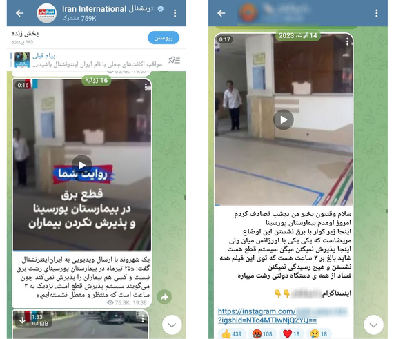 روز گذشته رسانه صهیونیستی «اینترنشنال» روز گذشته ۲۵ تیرماه ۱۴۰۳ با انتشار پستی در کانال تلگرامی خود مدعی شد که یکی از «شهروندخبرنگاران» از رشت، ویدیویی از قطع برق بیمارستان پورسینا ارسال کرده است؛ در حالی که بررسیهای دقیق نشان میدهد این ویدیو متعلق به ۱۴ اوت ۲۰۲۳ (۲۳ مرداد ۱۴۰۲) با یک متن دیگر است و به هیچ عنوان به روزهای اخیر ارتباط ندارد.