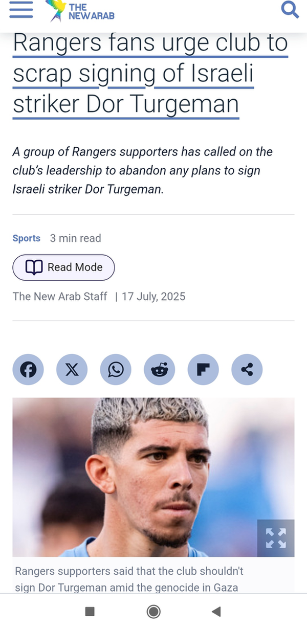 فارس/هواداران گلاسکورنجرز با جذب مهاجم صهیونیست متهم به کودککشی در غزه مخالفت کردند.