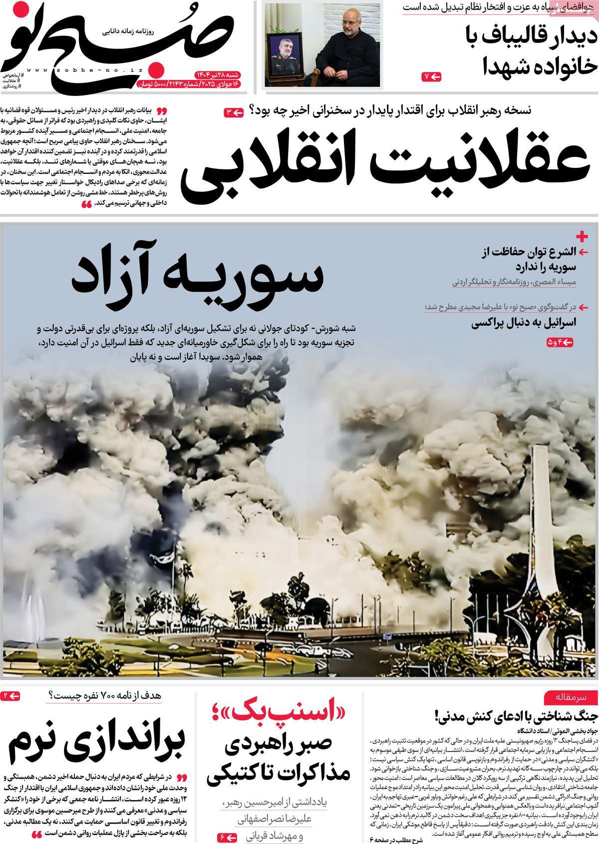 صفحه اول روزنامه صبح نو شنبه ۲۸ تیر