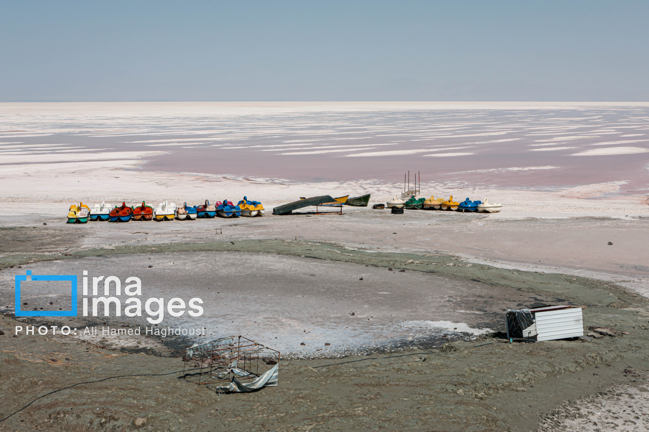 تراز آبی دریاچه به حدود ۱.۲۴ میلیارد مترمکعب رسیده و وسعت آن تا ۹۵۰ کیلومتر مربع کاهش یافته است. افزایش تبخیر و گرمای شدید تابستان، خطر خشکی کامل دریاچه را تشدید کرده است. انتشار نمک از بستر خشکشده دریاچه تهدیدی جدی برای سلامت زیستمحیطی و انسانی به شمار میرود. دولت چهاردهم با اجرای طرحهای انتقال آب، اصلاح کشاورزی و فناوریهای نوین به دنبال احیای این پهنه آبی است.