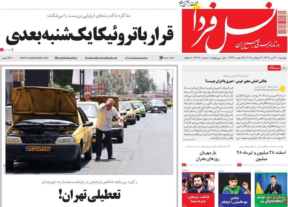 صفحه نخست روزنامه‌های اصفهان در ۳۰ تیر