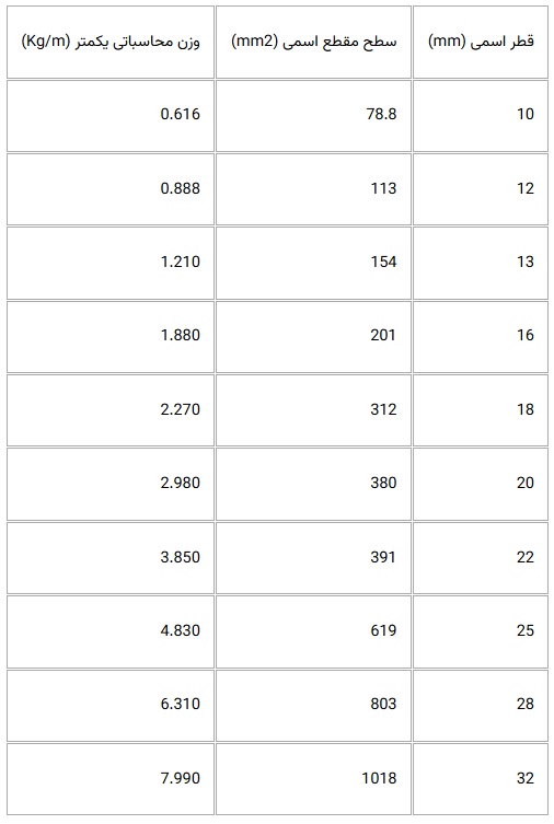 5. وزن و قیمت میلگرد: وزن میلگرد نیشابور نخستین فاکتور برای محاسبه قیمت میلگرد نیشابور به شمار میرود. میلگردهای این برند با توجه به استاندارد تولید و کیفیت مواد اولیه به کاربرده شده، نزدیک به استاندارد جدول اشتال است از همین رو در دسته میلگردهای سنگین به شمار میرود. به عنوان نمونه وزن میلگرد 18 نیشابور در هر شاخه 12 متری حدود 24 کیلوگرم است درحالی که وزن میلگرد 18 براساس جدول اشتال بین 22 تا 25 کیلوگرم است. در جدول زیر وزن میلگرد آجدار نیشابور را مشاهده میکنید.