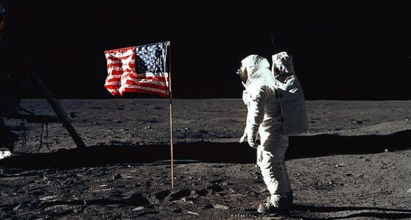 عکس پرچم آمریکا که بر روی سطح ماه کاشته شده است، یکی از نمادین ترین تصاویر از فرود بر ماه است.