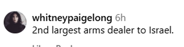 یکی دیگر از کاربران به حمایتهای آلمان از اسرائیل اشاره و نوشته این کشور دومین تأمینکننده تسلیحات برای رژیم صهیونیستی است.