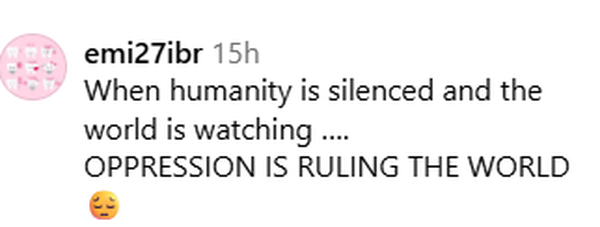 در همین حال، فرد دیگری نوشته است:«وقتی انسانیت ساکت میشود و دنیا فقط نظارهگر است... ظلم بر جهان حکومت میکند.»