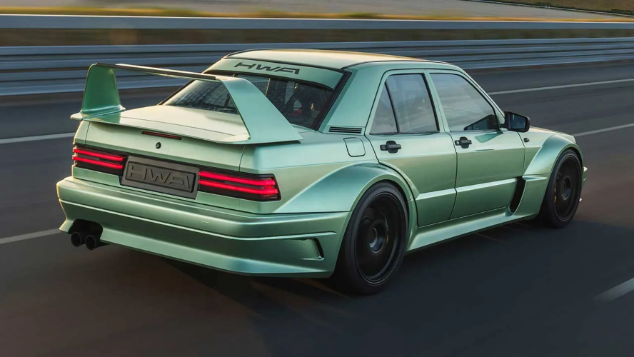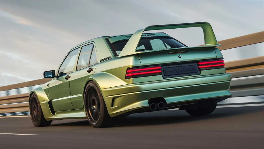 HWA Evo یک خودروی شگفتانگیز و جذاب است. بال عقب عظیم، رنگ چشمنواز و طراحی بینقص، مرسدس 190E قدیمی را به یک اثر هنری تبدیل کردهاند. شاید به فکر کلمه رستوماد افتاده باشید اما این خودرو چیزی فراتر از رستوماد است. این خودرو بهوضوح از مدل ویژه هومولوگیشن DTM سال 1990 الهام گرفته است اما هیچیک از 502 دستگاه اصلی Evo II برای ساخت آن قربانی نشدهاند زیرا HWA از یک 190E معمولی شروع کرده که مرسدس حدود دو میلیون دستگاه از آن ساخته است.