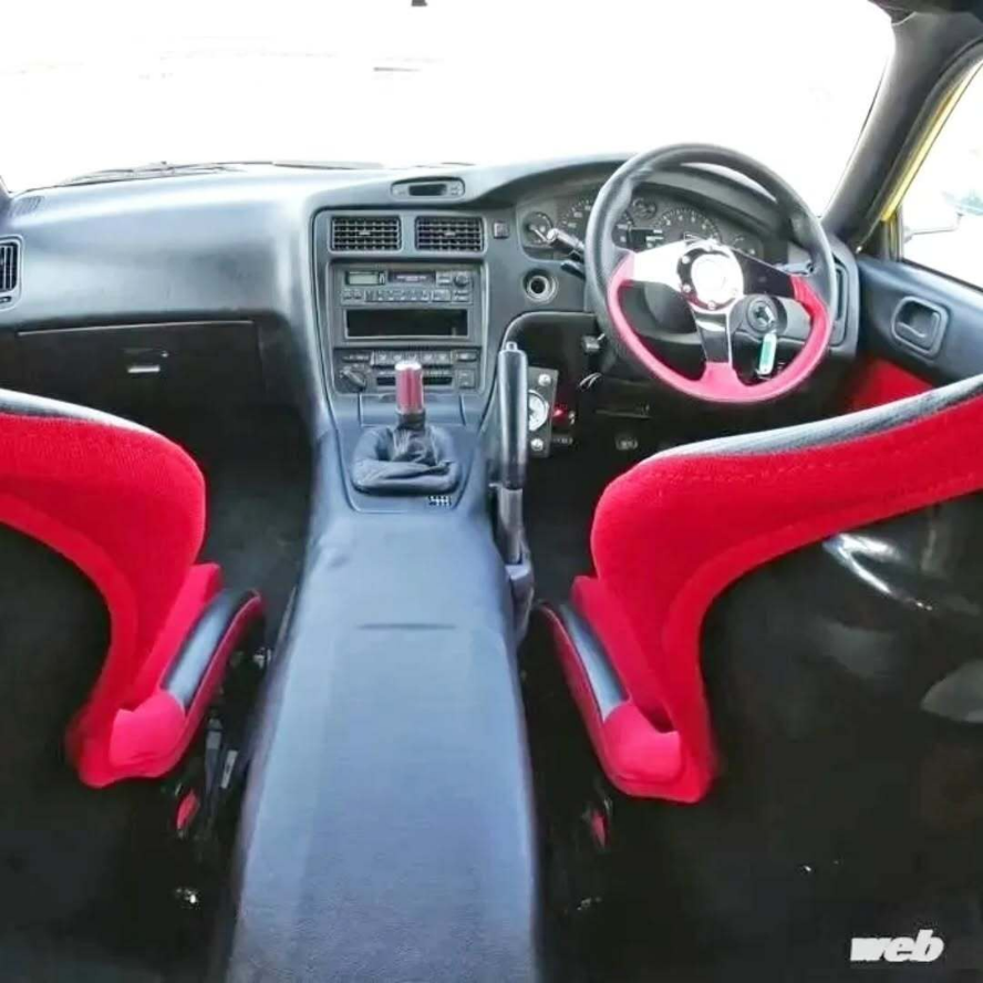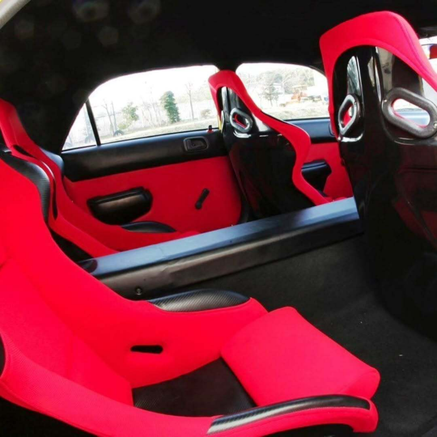 فضای داخلی این MR2 کشیده نیز شگفتانگیز است. صندلیهای اسپرت فول باکت هم در جلو و هم در عقب نصب شدهاند. روکش درها نیز بازسازی شده و با ترکیب رنگهای قرمز و مشکی، هماهنگ با صندلیها، ظاهری اسپرت به کابین بخشیدهاند.
