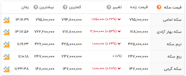 به گزارش آخرین خبر و تا لحظه تنظیم این خبر، سکه امامی با افت 175 هزار تومانی قیمت، 79 میلیون و 510 هزار تومان ارزش گذاری شد.
