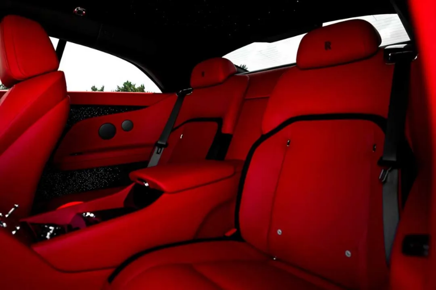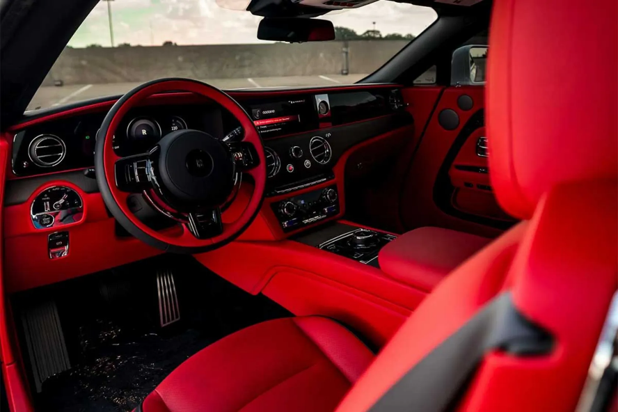 در داخل اسپکتر RS نیز رنگ قرمز آتشین نگاهها را خیره میکند. این رنگ قرمز جذاب تقریباً در تمام کابین از صندلیها و پنلهای درها گرفته تا فرمان، داشبورد و کنسول مرکزی دیده میشود، این رنگ قرمز با تزئینات مشکی، تریم چوبی روی داشبورد و المانهایی روی درها که یادآور سقف ستارهای هستند، همراه شده است. در اینجا همچنین کیفیت بیمانند رولزرویس و دقت در جزئیات کاملاً مشهود است.
