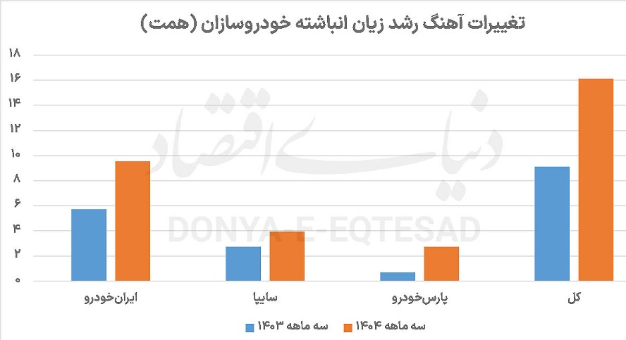 اما مقایسه سرعت زیاندهی سه خودروساز بزرگ کشور در بهار امسال نسبت به بهار سال گذشته نشان میدهد که خودروسازان از ابتدای سال تا انتهای خرداد ماه با سرعت بیشتری زیان تولید کردهاند. بهطوری که در سه ماهه سال 1403 زیان انباشته خودروسازان 9.1 همت معادل 4.9 درصد زیاد شده بود اما در سه ماهه امسال این ارقام به 16.1 همت و 7 درصد رسیده است.