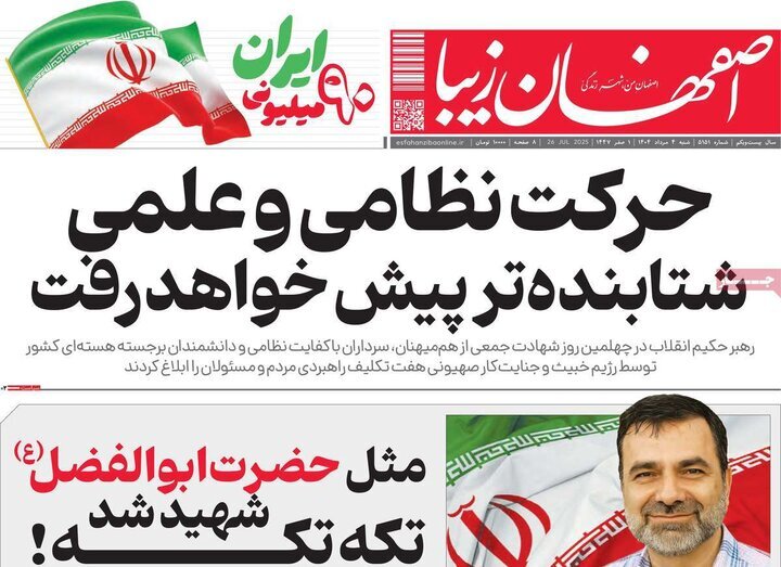 صفحه نخست روزنامه‌های اصفهان در چهارم مرداد