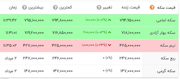 قیمت طلا و انواع سکه را در جدول زیر مشاهده می کنید.