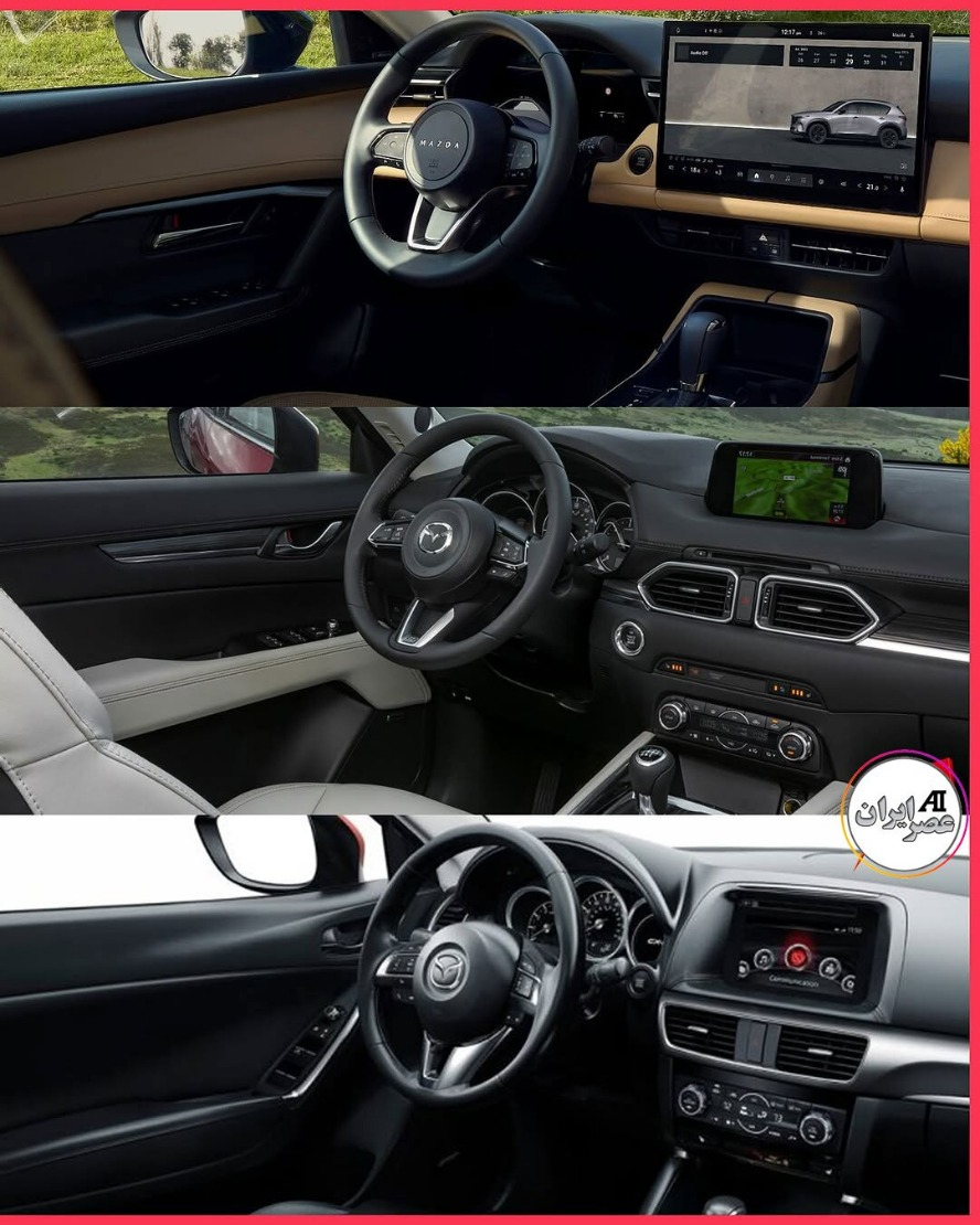 فضای داخلی این خودرو بیش از آنکه ژاپنی باشد، رنگ و بوی چینی به خود گرفته است؛ یک صفحه نمایش بزرگ بدون دکمههای فیزیکی، که تأییدی بر قصد مزدا برای تمرکز بیشتر بر مشتریان خود در این بازار است.